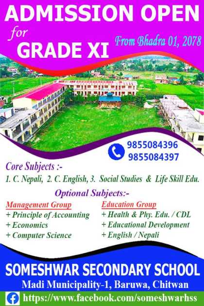 Admission Open For Grade XI In Someshwar Secondary School, Baruwa